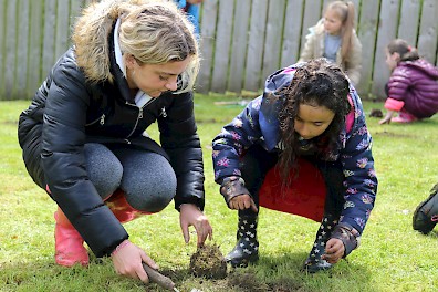A fantastic community event involving the children at Brampton Primary School took place on the 4th May. The planting session for Get Cumbria Buzzing with Cumbria Wildife Trust taught all of us about wildflowers and planting to encourage wildlife. As you can see, we all had a great time planting bee-friendly flowers despite the rain!
